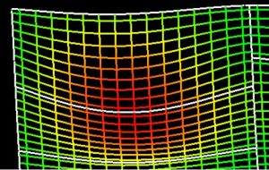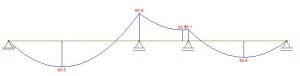 Conforme a imagem, espera-se momento negativo ao longo de praticamente toda essa laje no sentido em análise. Pode-se confirmar esse comportamento analisando os esforços nas barras da grelha.