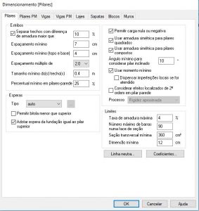 CONFIGURAÇÕES DE DIMENSIONAMENTO Critérios de Dimensionamento de Pilar Critérios de Dimensionamento de Viga Critérios de Dimensionamento de Laje Critérios de Dimensionamento de Sapata Critérios de Dimensionamento de Blocos Majorador de Pressão Para Cargas Excêntricas