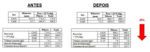 Obviamente, essas estratégias de otimização não funcionam em todos os pilares. Em alguns a REDUÇÃO DE CONSUMO DE AÇO foi bem mais discreta e em outros não houve redução alguma.