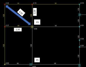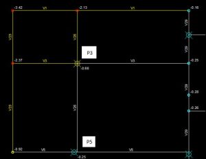 Para entender melhor, vamos ver a imagem abaixo referente ao exemplo do pavimento analisado no artigo anterior. Observando V3, vemos que há um deslocamento vertical sobre o apoio P3 de 0,66cm e sobre o apoio V29 de 0,25cm. Com isso, como fazemos para desconsiderar esses deslocamentos na análise das flechas?
