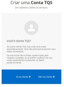 2) O TQS Estudante está disponível tanto para quem já é cliente quando para que não é. Na página seguinte, selecione a opção que corresponde ao seu caso, realize o cadastro no site e gere um login e senha.
