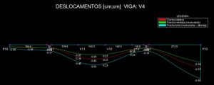A maior parte desse deslocamento é causado pela viga de equilíbrio, como pode ser visto abaixo. Repare que o deslocamento máximo está dentro do limite de aceitabilidade visual, mas mesmo assim está impactando os deslocamentos e esforços na estrutura.